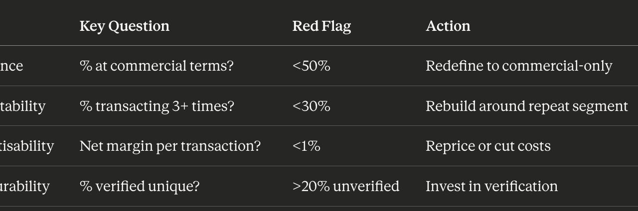 How to stress-test existence, repeatability, monetisability, and measurability — before your spreadsheet lies to you