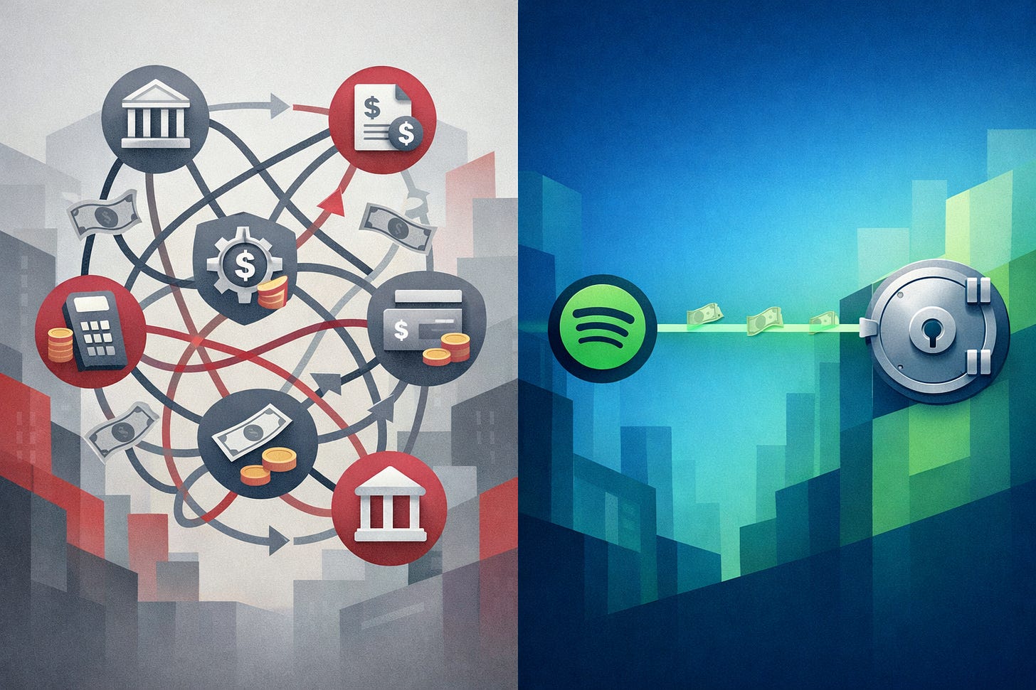 Bank B didn’t have better risk appetite. It had better legal design. The bank embedded letters of direction with Spotify, Apple Music, and YouTube into the security package. This transformed the credit from “loan secured by illiquid IP collateral” to “loan secured by contractual payment streams from investment-grade counterparties.”