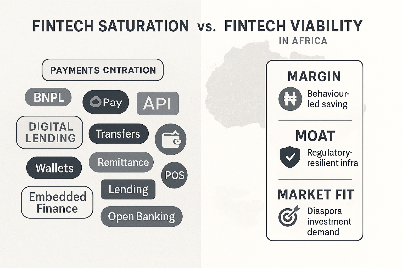 The infrastructure play — “we’re the rails, not the wallet” — is more defensible, but no longer uncrowded. Flutterwave, Paystack, Moniepoint, and even banks themselves have moved aggressively into embedded payment solutions. API startups face regulatory tightening (e.g., PSSP license requirements) and increasingly short runways.