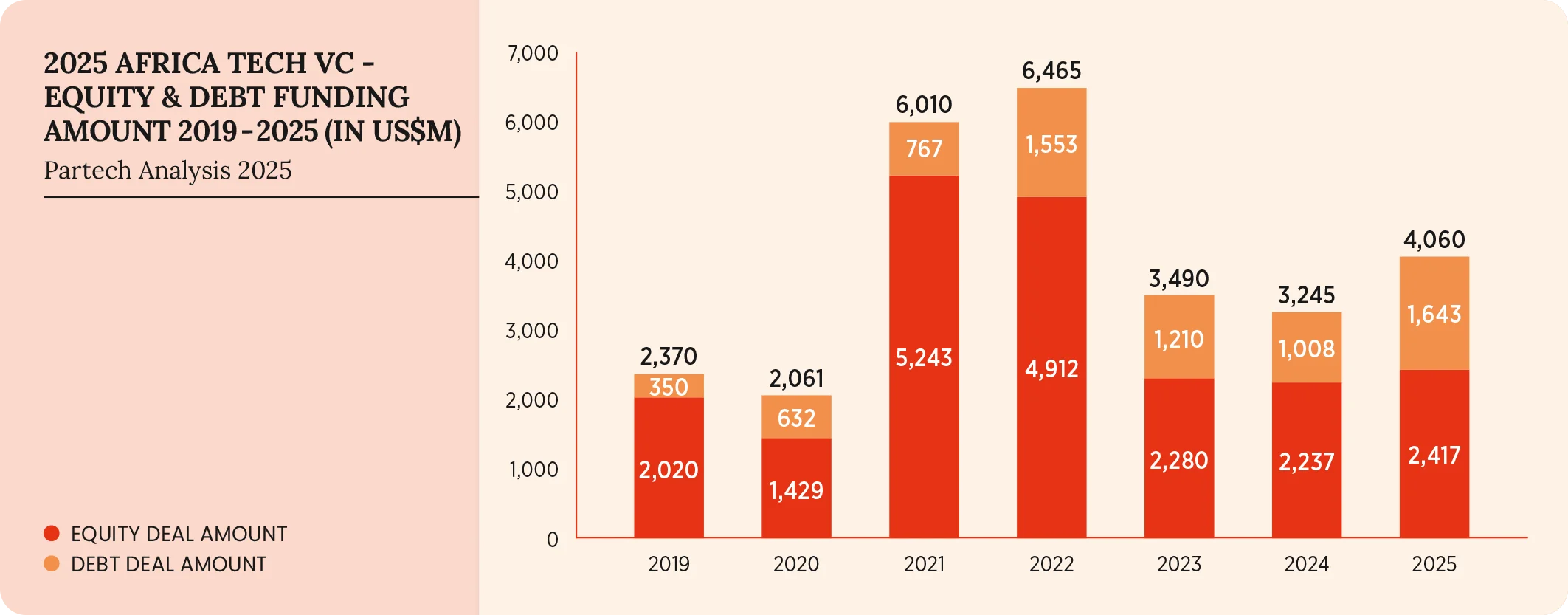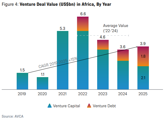 AVCA’s seventh annual Venture Capital Activity in Africa report, released earlier this month, puts the headline figures on the table. African startups raised $3.9 billion last year across 506 deals — a figure Partech Africa’s concurrent annual report rounds slightly higher at $4.1 billion once all debt instruments are captured. Africa was the only global region where venture deal activity didn’t decline. Domestic investors hit a record 45% of venture fund commitments, nearly double their 23% average from 2022–24. AVCA’s CEO described the shift as a “recalibration towards patient, structured and locally anchored capital.” The narrative writes itself: Africa’s ecosystem is finally anchoring to homegrown capital.